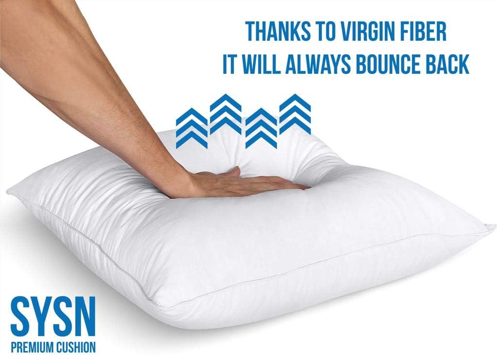 - ✅ SYSN GUARANTEED PREMIUM QUALITY: SYSN Cushions are crafted in a way that no customer, on the off chance, might face sewing hassles, since our core aim is customer satisfaction. Our Generously filled Square Cushion is designed to give your Cushion pad cover a full, plump look and feel.